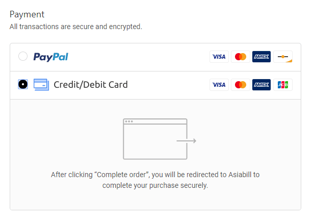 You can connect your PayPal, credit card, debit card or bank account to PayPal for purchasing some of our products. After submitting an order, you will be redirected to PayPal to complete the transaction.